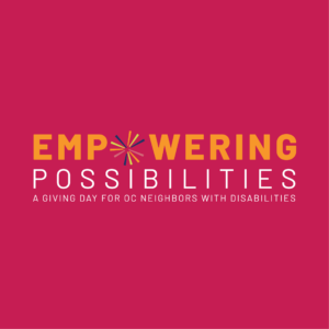 Empowering Possibilities, a Giving Day for individuals living with disabilities in OC, is on May 11th. Join us in supporting 13 nonprofits providing supportive services and programs to help Orange County’s disabled residents achieve success and independence.